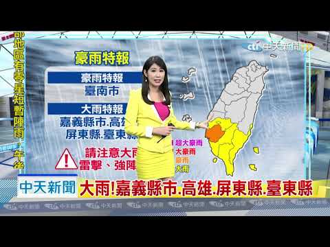 20190910中天新聞 【氣象】注意!臺南市豪雨 嘉義以南大雨特報